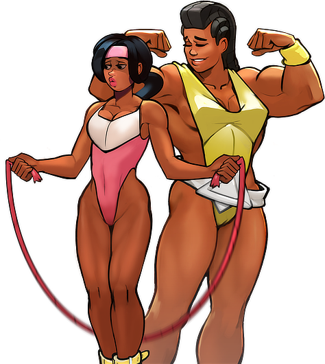 Help a pro-wrestlers team to keep in shape. Build a gym, help them train- and cheer on your favorite girl during their oily wrestle match!